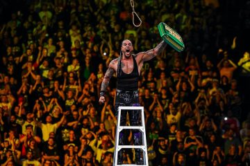 As the bout begins, duelling chants for both Superstars fill the air creating a cacophony of noise. The match not only lives up to expectations, but completely surpasses them. False finishes, interferences and ear-splitting gasps of delight from the crowd combine to make the clash one of the matches of the year and certainly in the conversation for all time.
